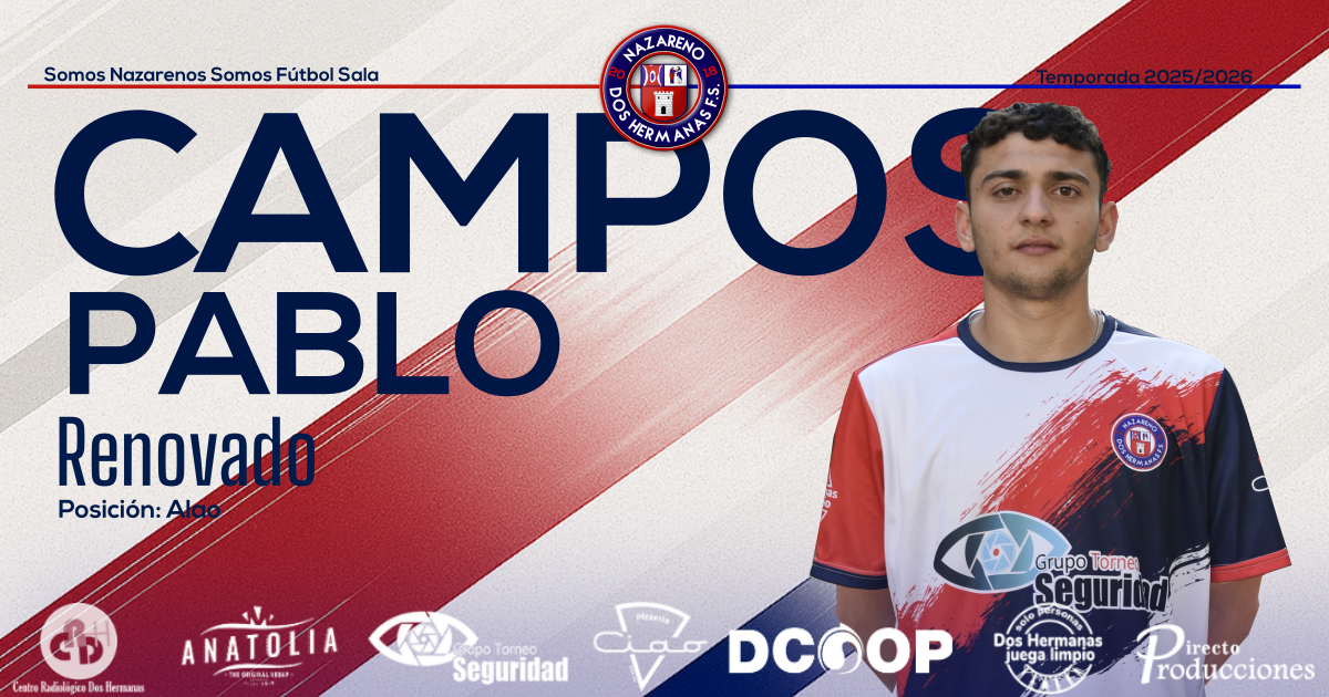 El GTS Nazareno Dos Hermanas FS sigue construyendo su proyecto con solidez, y una de las piezas que continuará formando parte del primer equipo es Pablo Campos, que renueva su compromiso con el club para afrontar su tercera temporada como nazareno. Llegado en el verano de 2023 procedente de Payasos Crouss, Pablo Campos ha ido […]