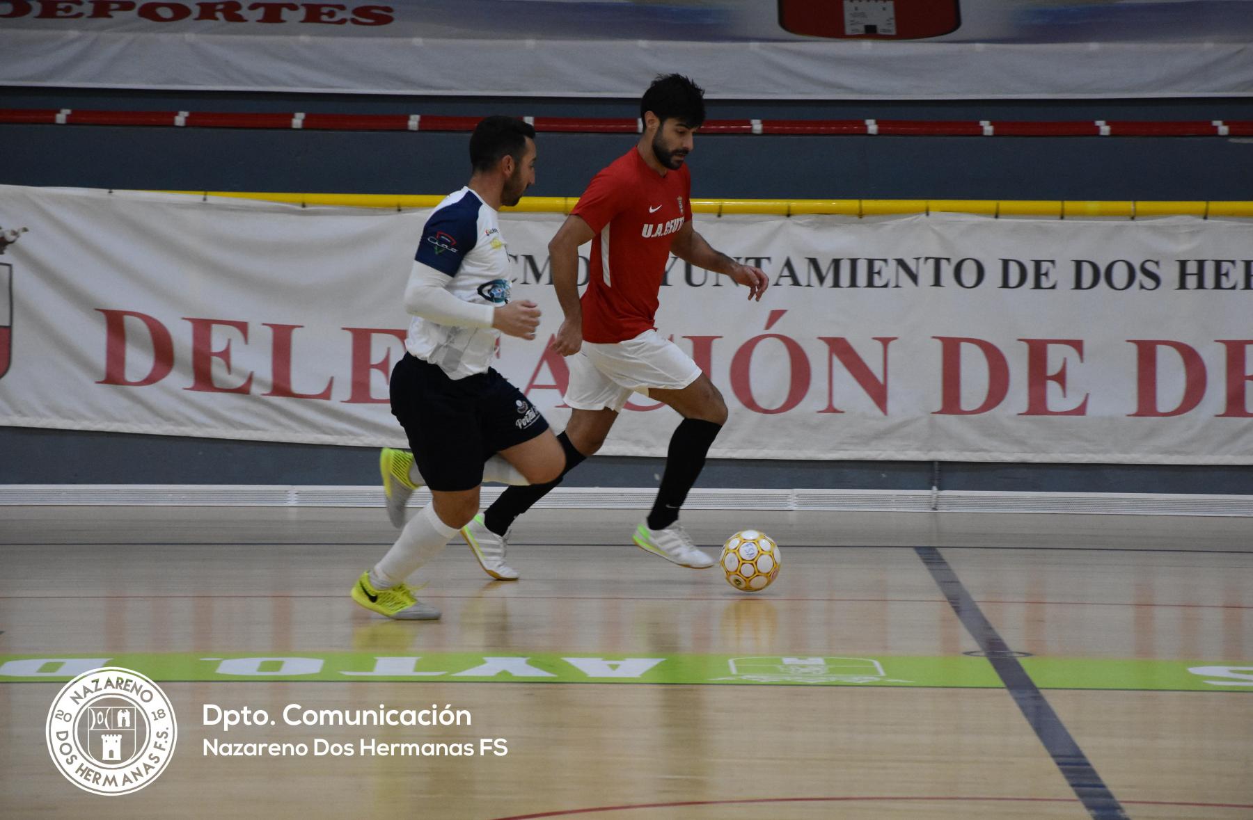 Importantísima victoria la que consiguió el GTS Nazareno Dos Hermanas FS ante la Unión África Ceutí B en el encuentro aplazado. Los de José Vidal, que salieron con otra cara al Francisco de Dios Jiménez perdonaron en exceso en la primera mitad, que acabó en empate tras un gran tanto de Borrego, e igualó por medio de Iván Galván a 8 segundos del final. Tras un gran segundo tiempo de los nazarenos, ante un buen filial caballa, los blancos consiguieron los tres puntos en casa para volver a los puestos de playoff. En el último partido de 2020, el Nazareno Dos Hermanas recuperó las mejores sensaciones y sumó una nueva victoria en el Francisco de Dios Jiménez.