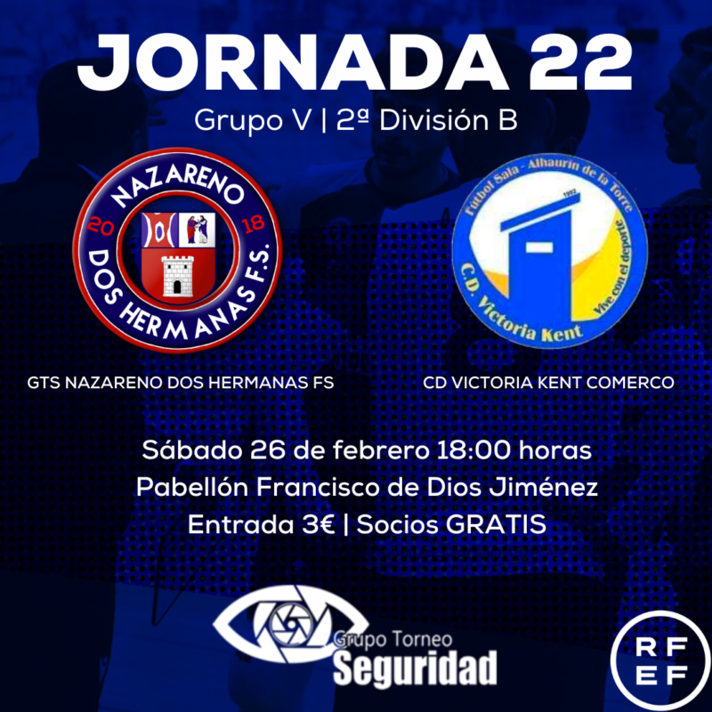 Tras tres partidos consecutivos sumando, llenar el pabellón ante el Victoria Kent, es un objetivo del club para el sábado. El próximo 26 de febrero, el GTS Nazareno Dos Hermanas FS recibirá a las 18:00 horas al CD Victoria Kent Comerco FS. Un duelo directo en la que el conjunto de José Vidal buscará sumar cuatro jornadas sumando.
